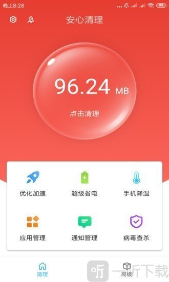 安心清理能帮你解决不少手机问题,还能检测手机是否存在安全隐患,帮你处理手机病毒问题,甚至当手机出现高温时,也能实时进行降温等操作,功能相当强大,有需要的可以尝试一下!
