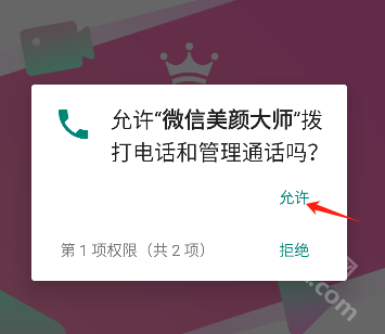 2. 在弹出的“允许微信美颜大师拨打电话和管理通话”提示框中点击“允许”按钮
