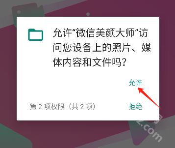3.接着点击允许微信美颜大师访问设备里的照片、媒体内容与文件