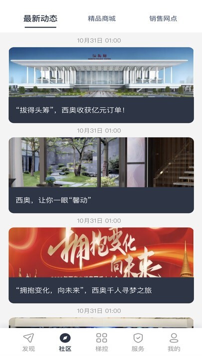 西奥管家是专为西奥电梯打造的智能管理软件,用户可通过手机连接该软件实现电梯控制功能,例如提前预约电梯上下楼按键操作,也能进行维修或故障报修。欢迎大家使用。