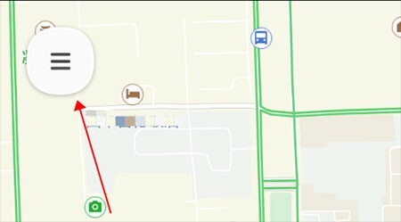 1、第一步先打开腾讯地图车机版,进入软件界面后,找到左上角的三条横线图标并点击;