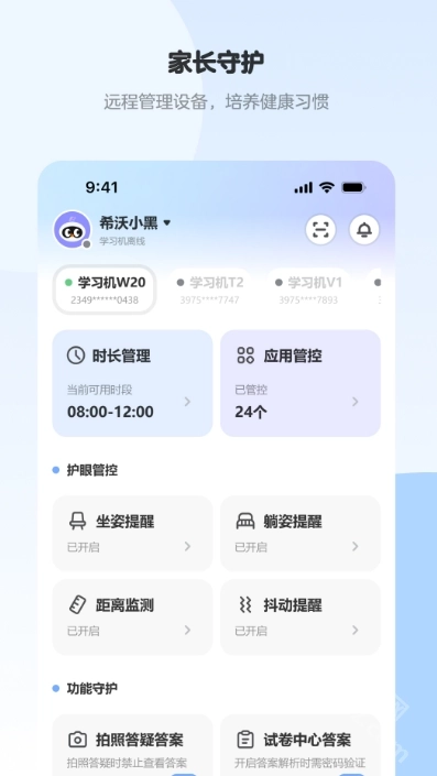 专为家长打造的智能硬件管理工具,可适配希沃学习机、亲子屏等各类设备