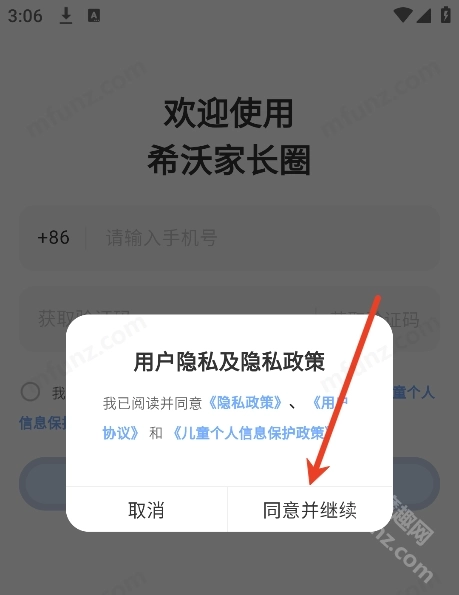 1、打开希沃家长圈点击同意并继续