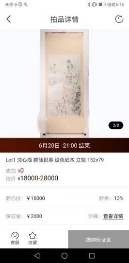 3.软件会实时显示作品的拍卖时间,用户可依据该时间安排,在指定的拍卖时段内按时缴纳保险金以完成购买操作。