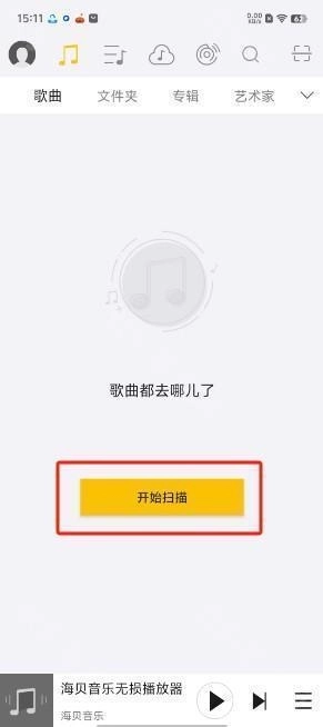 第一步:启动软件后进入“歌曲”界面,找到该界面上的“开始扫描”按钮