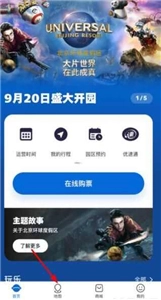 1、打开环球影城,在首页找到【地图】按钮并点击,即可进入地图页面。