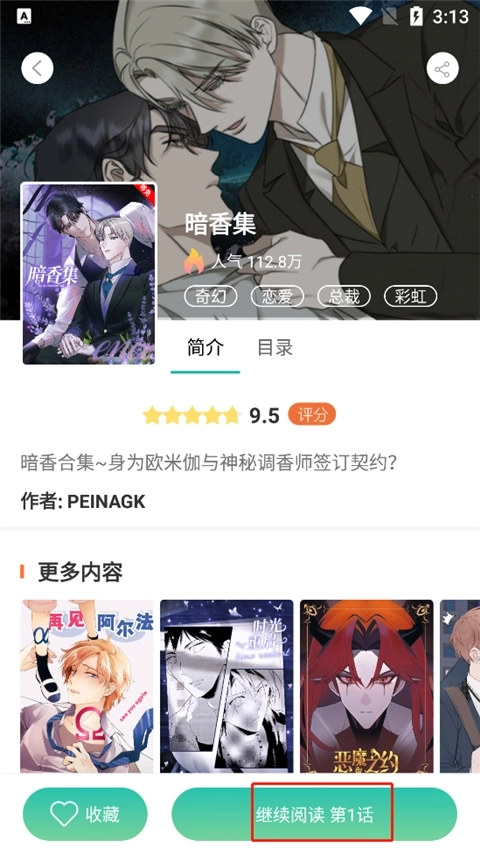 1、进入软件,选择你喜欢的漫画,点击继续阅读;