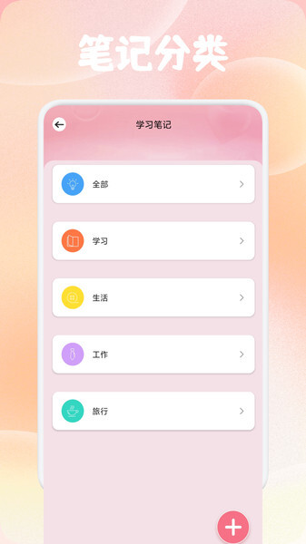 记录的笔记会进行分类,涵盖学习、生活、工作、旅游等不同方面。