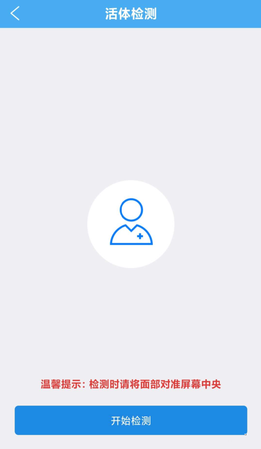 3、核验并确认身份信息无误后,点击【 活体检测 】;