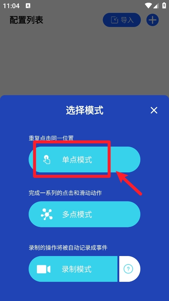 4、然后选择点击模式,以"单点模式"为例。
