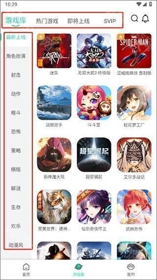 2、点击页面底部的游戏库,即可查看该软件收录的所有游戏,之后还能依据分类来筛选出自己想玩的游戏