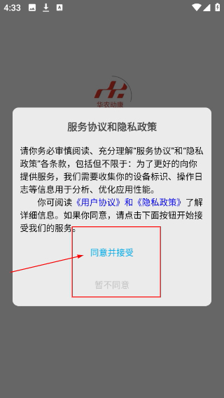 1、在进入应用之前,会弹出【服务协议和隐私政策】的窗口,仔细阅读相关条款后,点击【同意并接受】按钮,就能进入应用的主界面了。