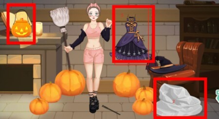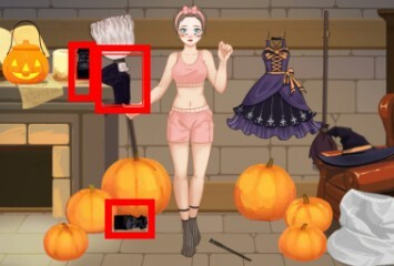 3、在“一起捣蛋”关卡里,玩家需要把小姐姐打扮成万圣节小魔女的样子。