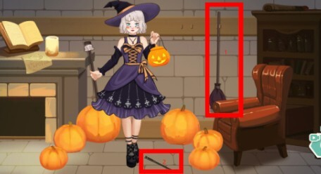 - 更换服饰:先穿鞋,戴袖套,拿起南瓜灯。