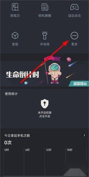 2、借助下拉菜单能够打开扩展功能区,这里面有视力检测、睡眠锁屏、智能连点之类的实用工具,点击“更多”就能进入高级设置界面。