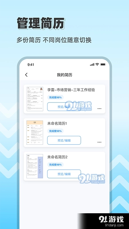 在面试的时候简历是能影响HR对你的第一映像的一样东西,小编推荐大家求职简历大全,里面有海量简历模板可以使用,在线制作,填写个人信息就能一键排版智能生成简历,有需要的小伙伴快来91求职简历大全吧。