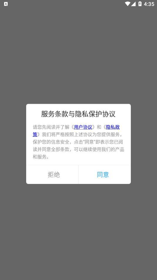 1、把软件安装好后打开,点击同意相关的服务条款以及隐私保护协议。
