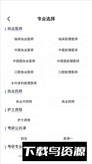 2、进入软件后,第一步是选择专业方向,需依据个人的备考需求来完成设定。