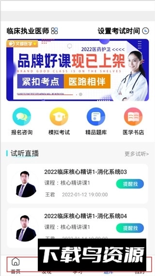 4、该应用设有发现、学习、题库等多个板块,用户可在此观看教学视频和直播课程,其余丰富功能可在使用过程中逐步体验探索。