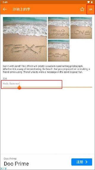 进入该功能界面后,在文本区域的下方输入需要书写的内容,接着点击右上角的OK按钮,即可启动制作流程。
