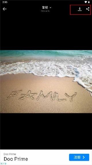 制作完成的沙滩字体,可点击右上角的分享按钮,将其保存至相册或分享到社交平台。
