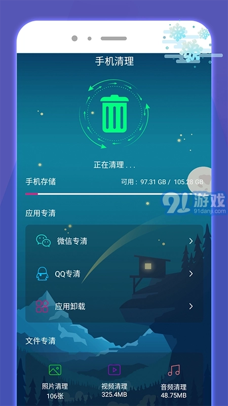 1.专业清理:具备一键清理缓存垃圾的功能,特别是微信专清,能够快速释放手机性能。