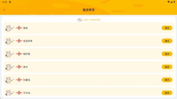 3、在猫语常用板块,我们可以知晓一些基础叫声所对应的猫咪情感需求。