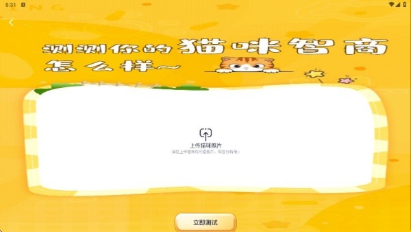 5、在测一测板块,上传猫咪的身份证,就能借助数据分析得知你的猫咪智商水平。
