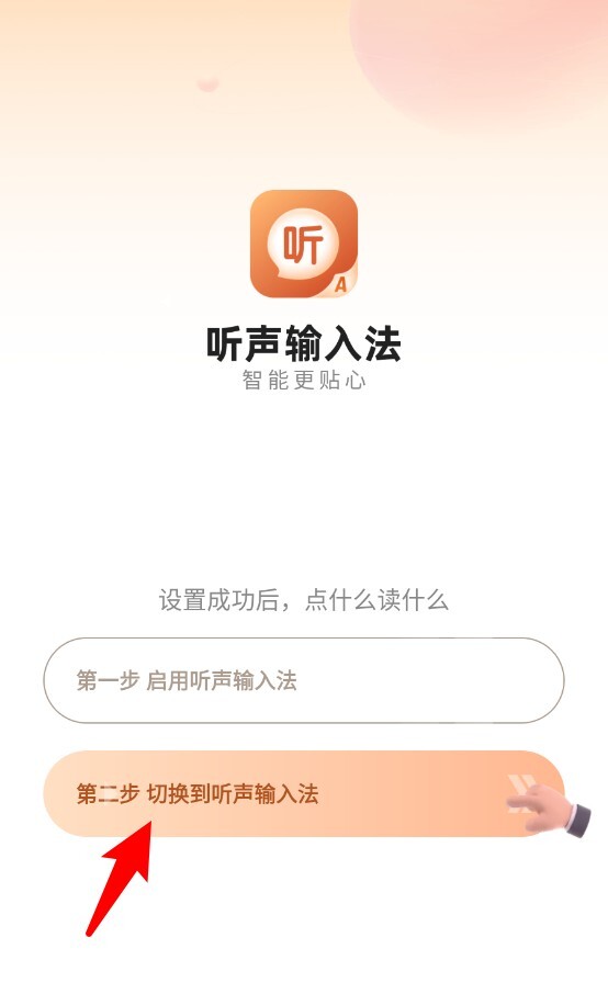完成第一步操作后,请接着点击“第二步切换到听声输入法”,将其设置为默认输入方式。