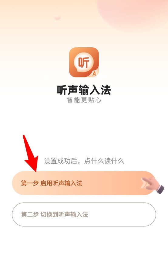 1、打开应用后,点击“第一步启用听声输入法”按钮,开始设置输入法权限。