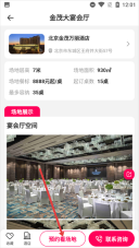 3、进入宴会厅详情页后,点击【预约看场地】按钮,即可跳转至预约信息填写界面,此页面还包含场地展示等相关内容。