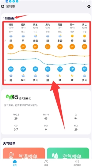 1.无需繁琐操作,即可轻松查看未来15天的天气情况,打开软件就能获取精准的天气数据,让你快速掌握天气动态;
