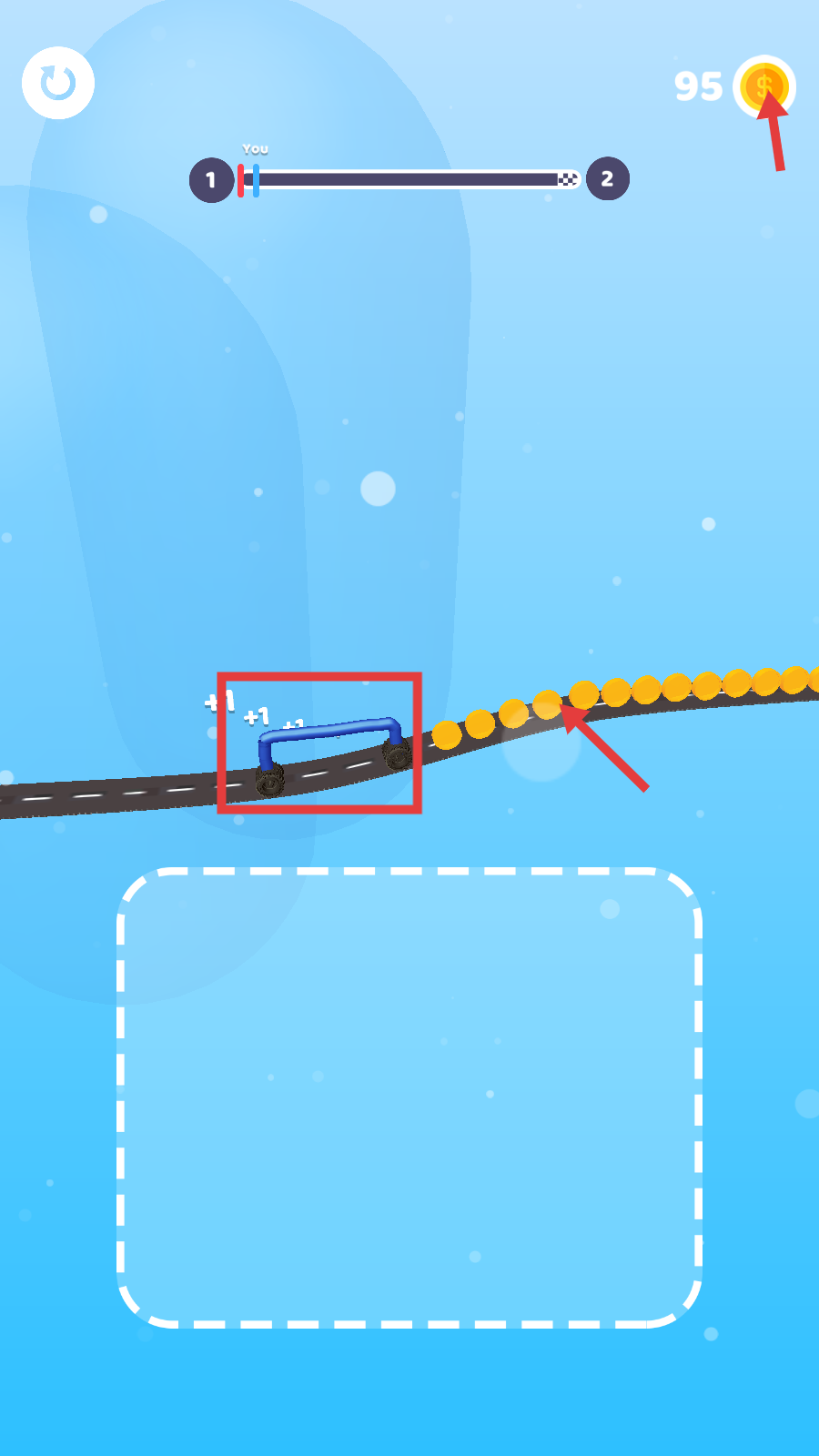 3、车辆行驶时,留意收集道路上的金币,积攒金币数量。