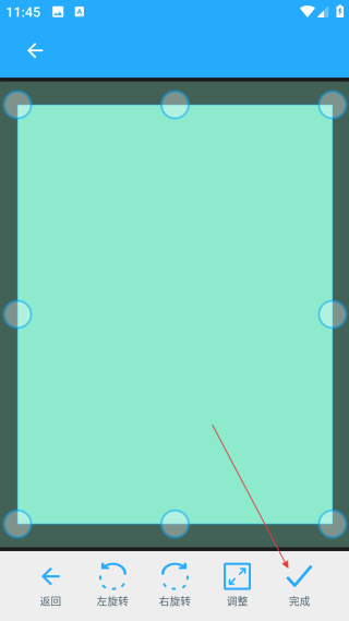 3、扫描完成后,调整文件对应的区域范围,确认无误后,点击底部的【完成】按钮,即可进入后续的编辑环节。