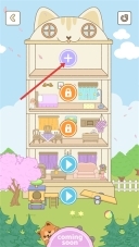2、进入宠物屋界面后,点击顶部的【+】按钮即可解锁新楼层,带有【锁】标识的区域需要先完成前置操作才能解锁。