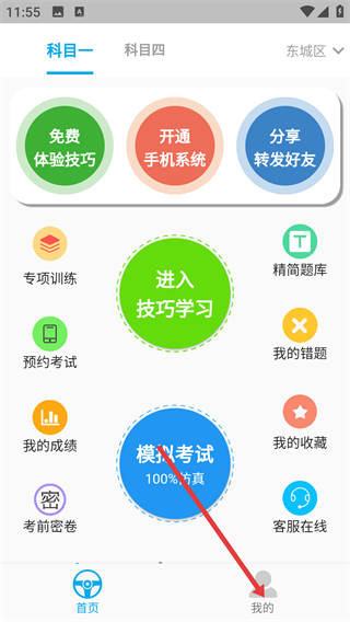 1、打开驾考软件首页后,点击页面底部的【我的】选项,即可进入个人中心页面。