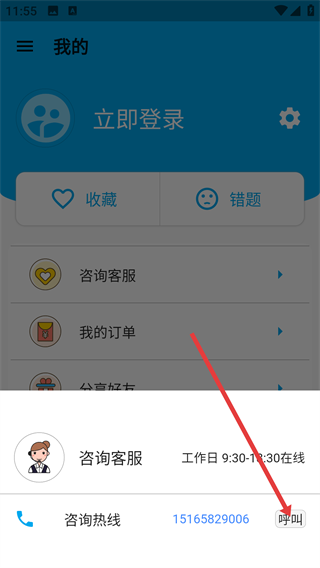 3、在客服咨询界面,找到咨询热线,点击【呼叫】按钮,可拨打客服电话。
