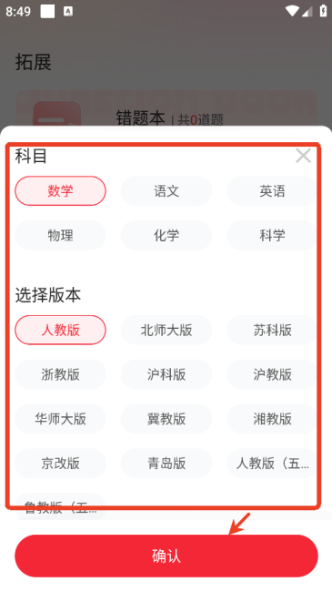 2.可依据自身实际情况,挑选需要学习的科目与版本,随后点击确认按钮。
