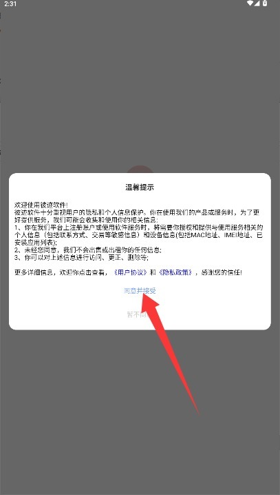 1、首次使用时,请仔细阅读平台的服务条款与隐私政策,在确认无误后,点击“同意并接受”按钮即可进入平台。