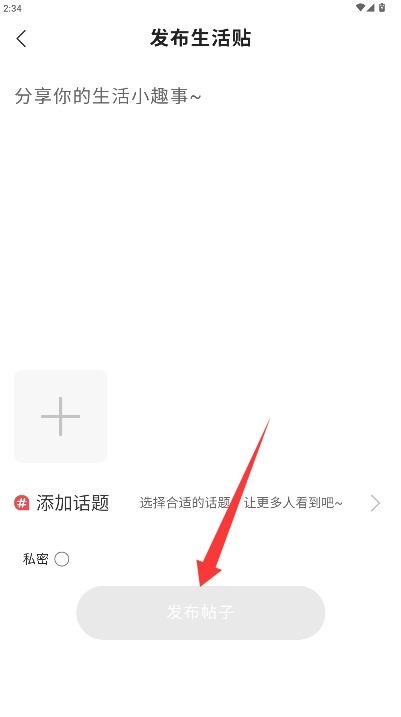 4、编辑正文内容,添加相关图片和话题标签,确认无误后点击发布按钮,就能分享自己的动态了。