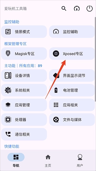 2、然后进入爱玩机工具箱中点击【xposed专区】