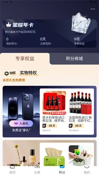 3、然后在积分中可以通过使用所积累的积分和专属权益来兑换多种特权物品;