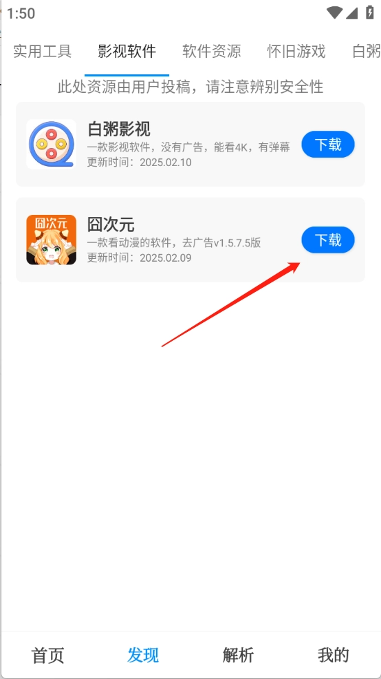 进入“发现”页面后,你会看到这里汇聚了丰富多样的软件资源,无论是影视类、小说类,还是音乐类等,都能在此找到。