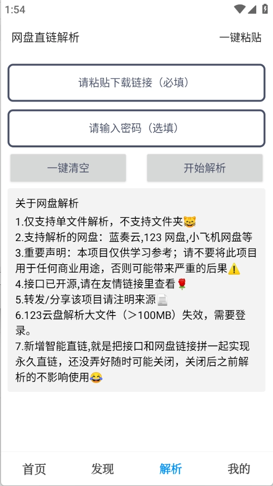 “解析”功能,输入解析链接就可以开始解析了。
