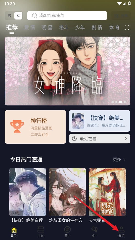 打开创漫客,进入首页,选择所需阅读的漫画。