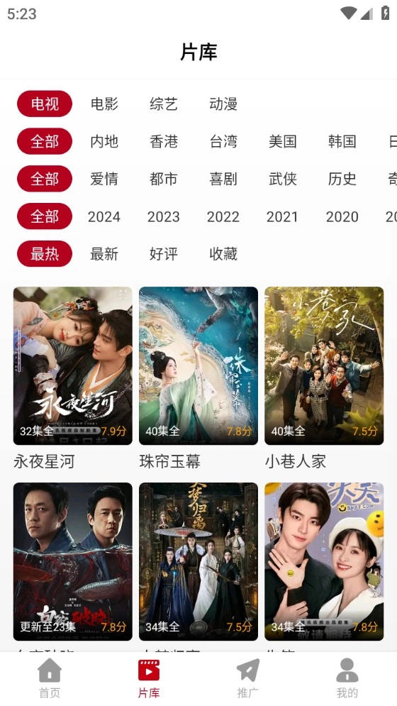 切换到“片库”板块,就能依据题材、时间等条件筛选心仪的资源。