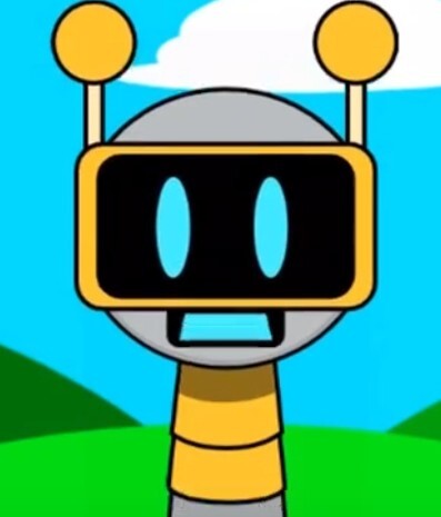 Funbot快乐机器人,性别为非二进制男性,是一位拥有蓝色眼睛的机器人。