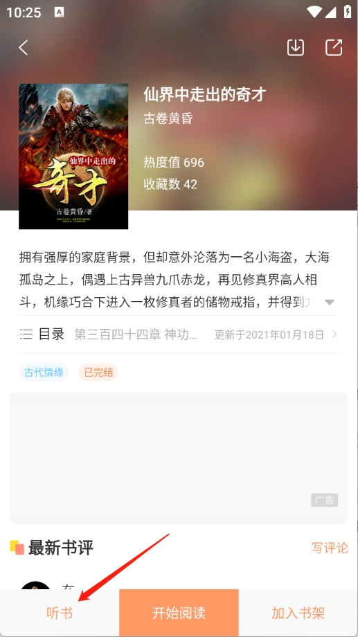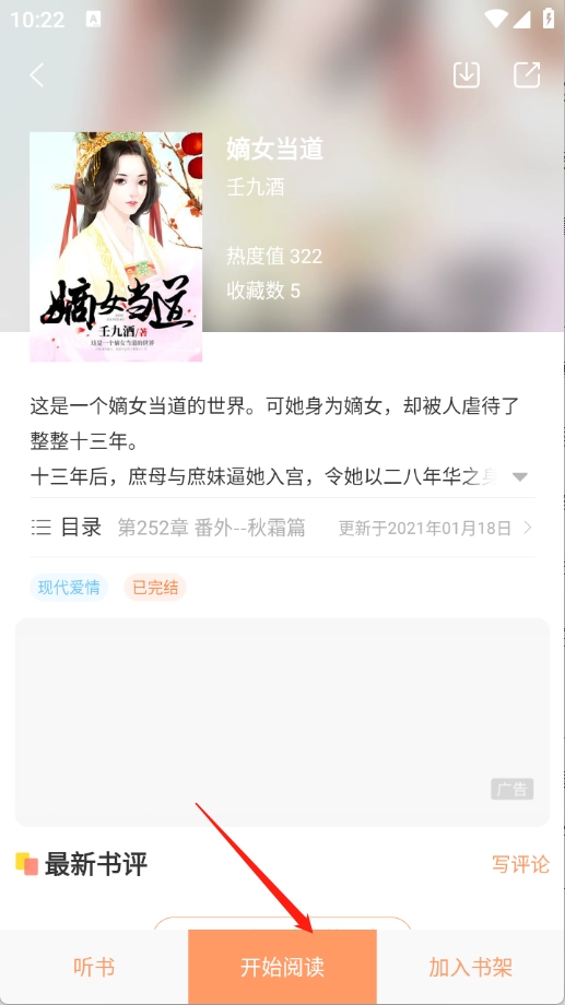 找到喜欢的小说或漫画资源后点击进入,然后选择“开始阅读”按钮。