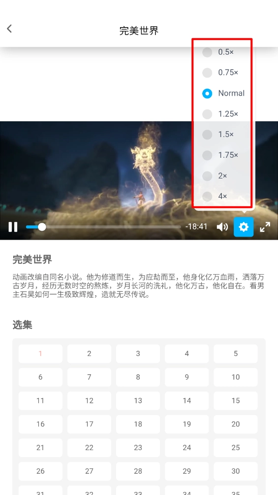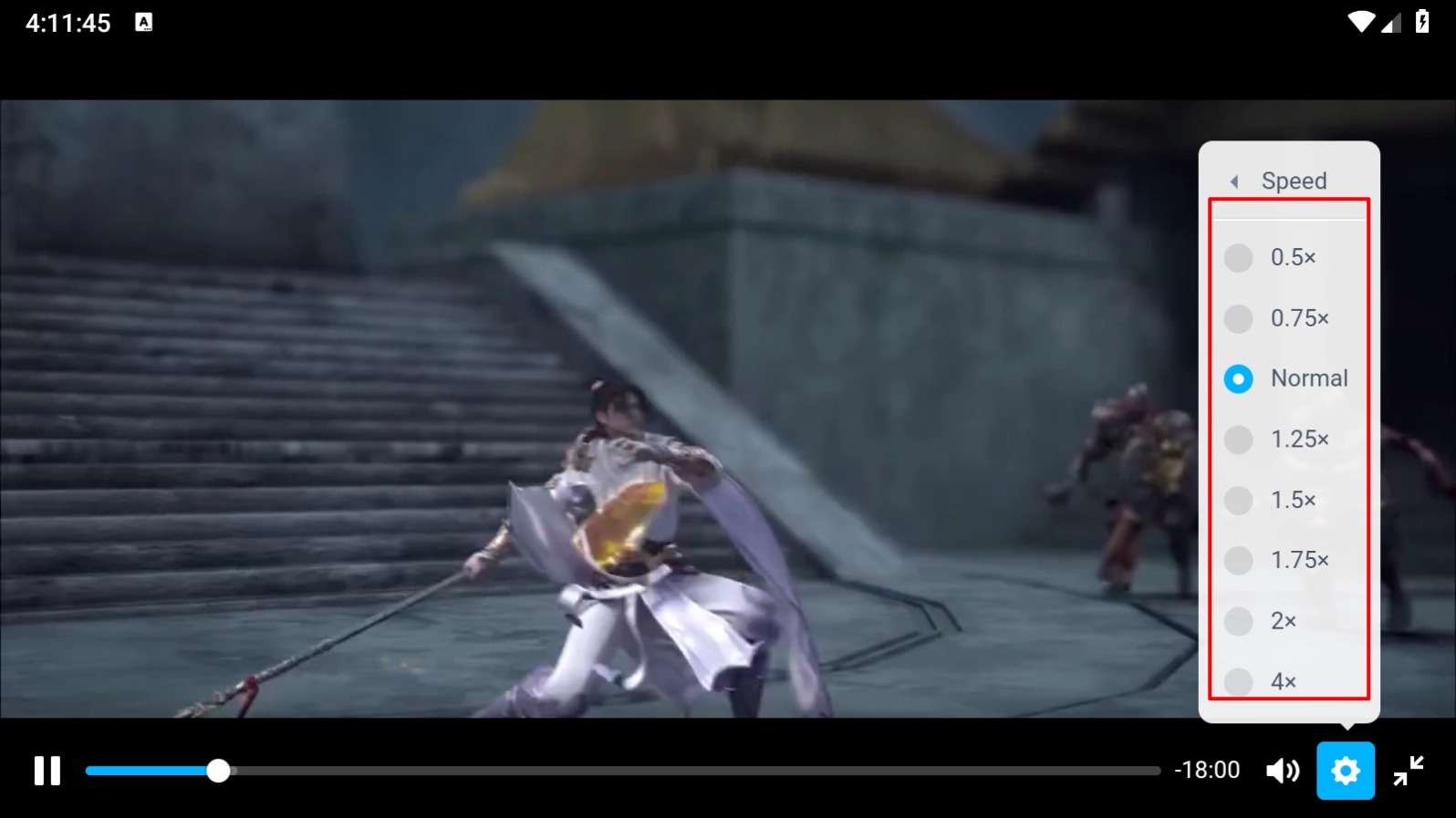 一键点击进入播放页面,如图所示,找到设置图标并点击进入,接着点击“Speed Normal”选项。