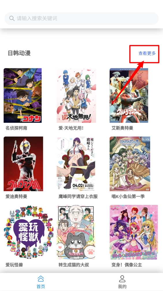 打开宅此方,在首页找到日韩动漫板块,点击其右侧的“查看更多”按钮进入。